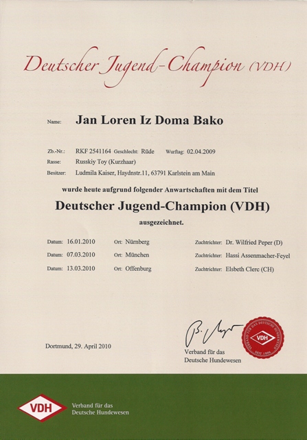 Russkiy Toy vom Grand-Toy. VDH/ FCI.